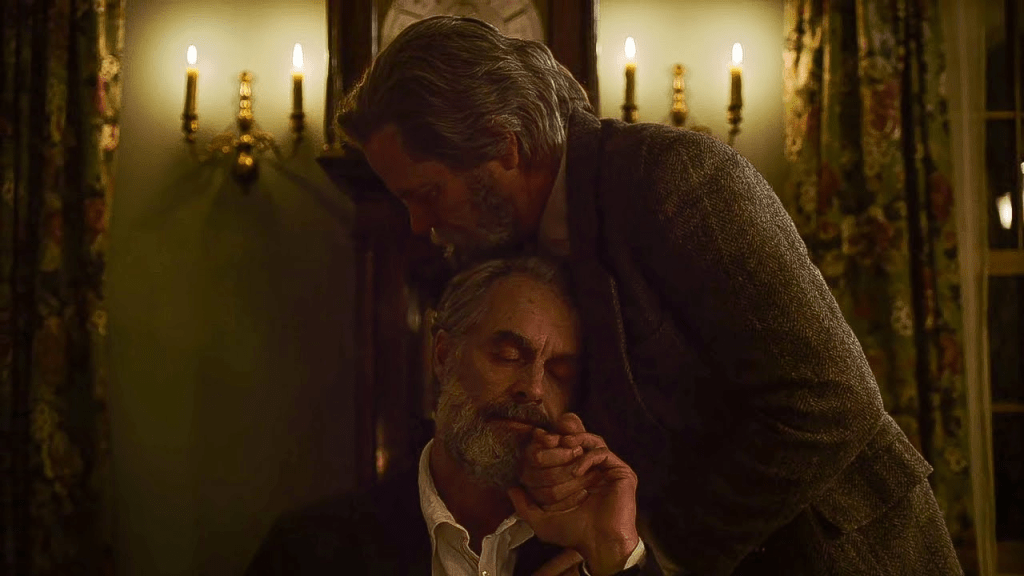 I remember watching this scene for the first time. I remember there was one particular shot that explicitly framed Frank standing tall while looking at Bill’s exposed and vulnerable turned back. I remember thinking about how this scene directly inverts their initial encounter of Bill looking down on Frank in the hole. I remember fear—thinking to myself that this was Bill’s mistake and his moment of peripeteia in which upon turning his back and showing vulnerability, he commits taboo in regards to both the apocalypse and his personal set of cautious values, and Frank will surely now bring down his scythe, punishing Bill for growing lax… But once the music started and first three chords played, I knew immediately that everything will be alright.